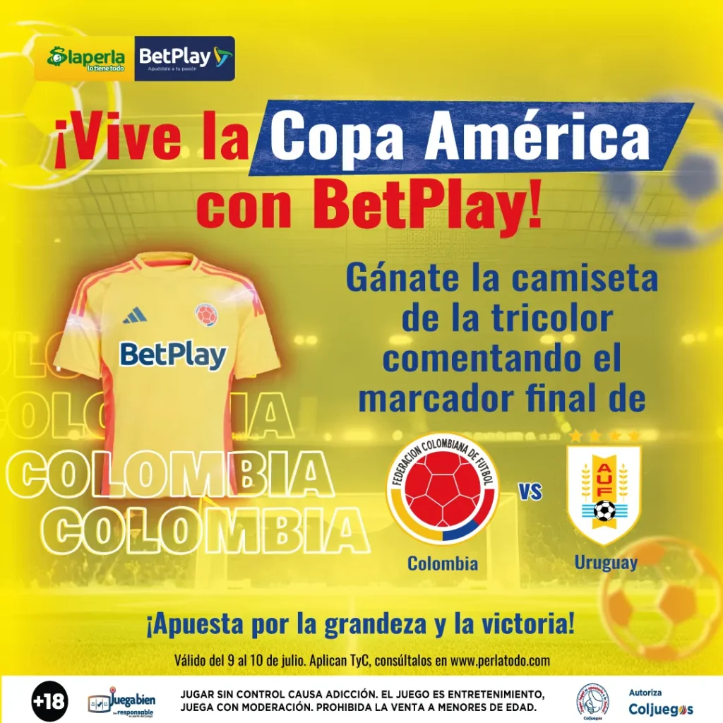 Gánate la camiseta oficial de la selección Colombia acertando el marcador final del partido Colombia vs. Uruguay en la sección de comentarios de la red social Instagram de Juegos y Apuestas La Perla. Participa desde las 4:00 P.M. del 9 de julio hasta las 4:00 P.M. del 10 de julio del 2024.