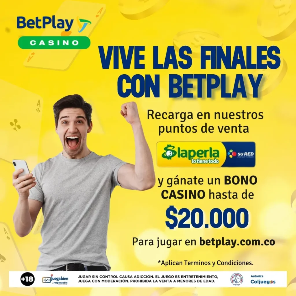 Gánate un Bono casino hasta de $20.000. para clientes que el día 24 de mayo de 2024 entre las 8:00 am y 9:00 pm, generen recarga a sus cuentas BetPlay en cualquiera de los puntos de venta de La Perla, así mismo deberá cumplir con cada una de las condiciones descritas a continuación.